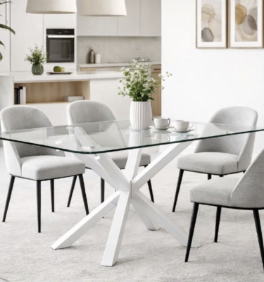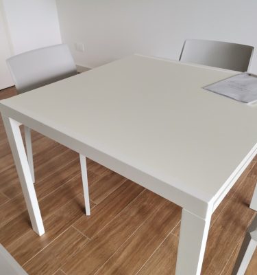 Tavolo fisso May in vetro con gambe bianche 160×90 Bizzotto
