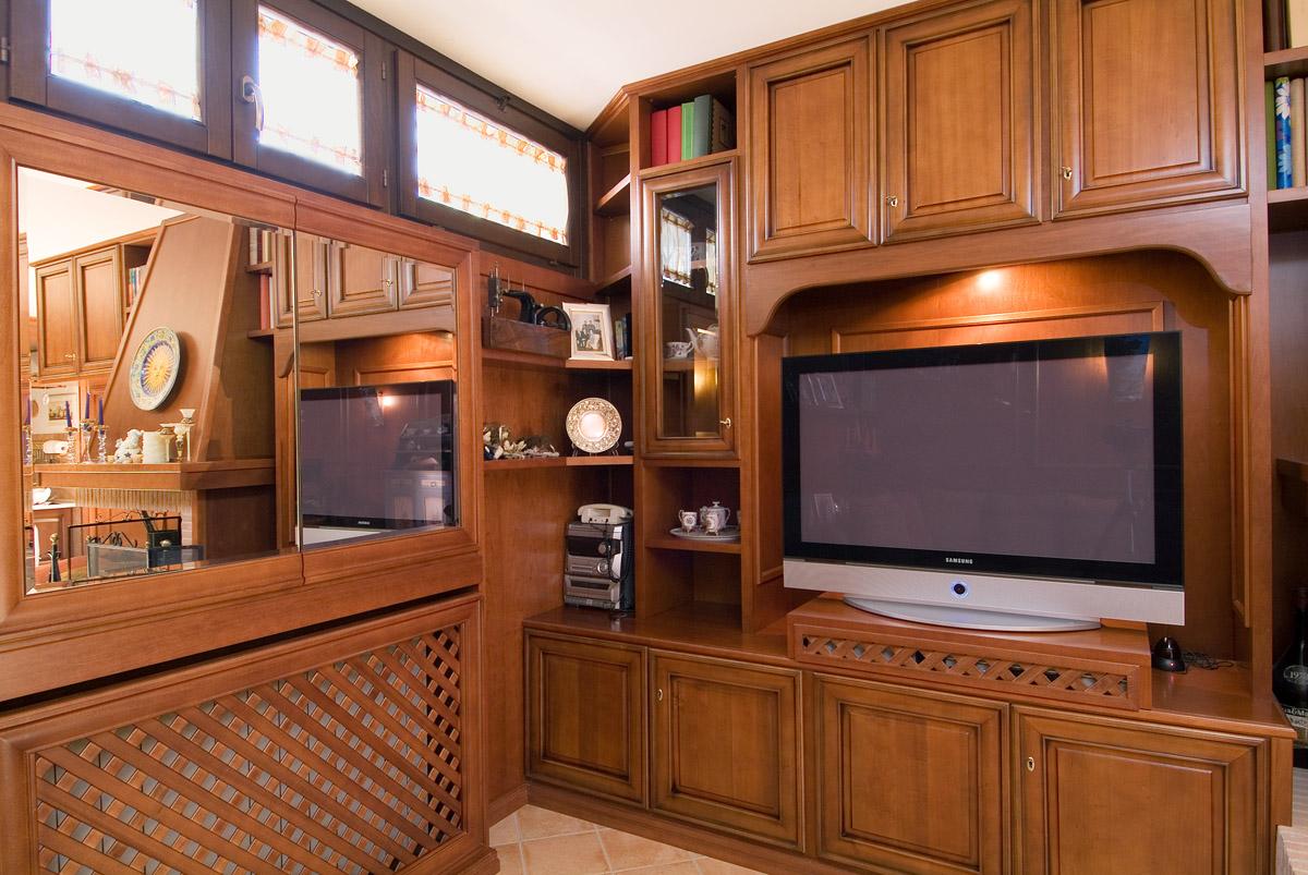 Le pareti attrezzate su misura e le librerie progettate su richiesta sono elementi d’arredo che definiscono lo stile e la funzionalità del soggiorno, dello studio o della zona living.