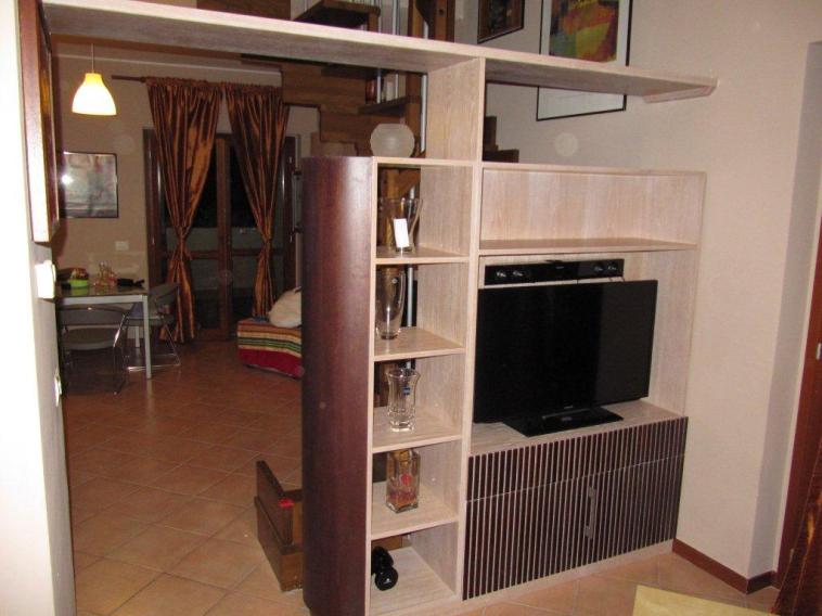 Sì. Possiamo progettare pareti attrezzate bifacciali che separano soggiorno e studio o zona giorno e notte, integrando contenimento e passaggi luce.