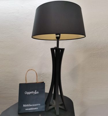 Lampada Tavolo Basamento Alluminio Nero Cappello Tela Nero Pomax