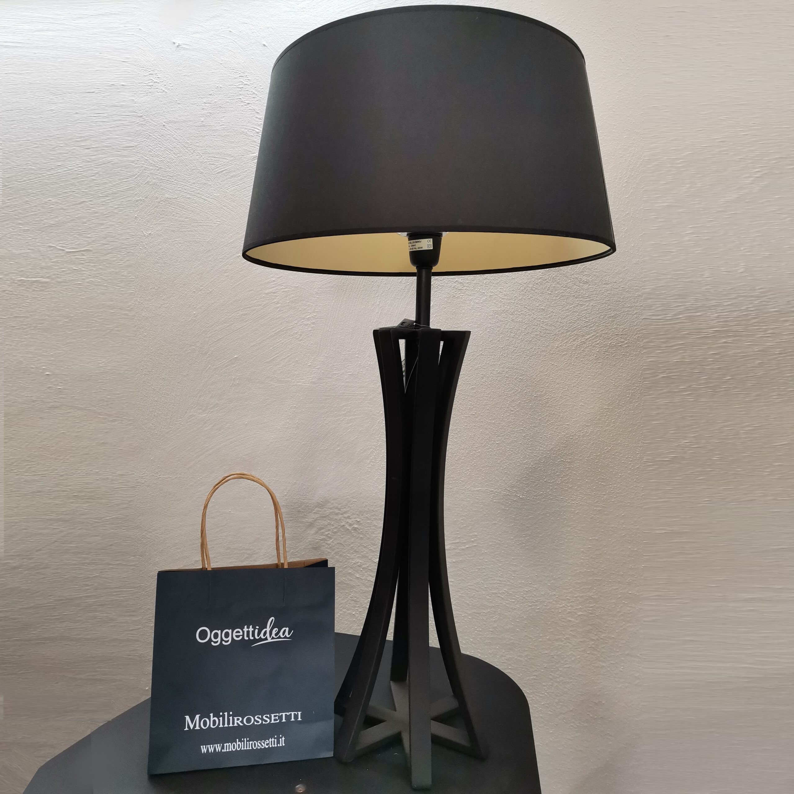 Lampada Tavolo Basamento Alluminio Nero Cappello Tela Nero Pomax