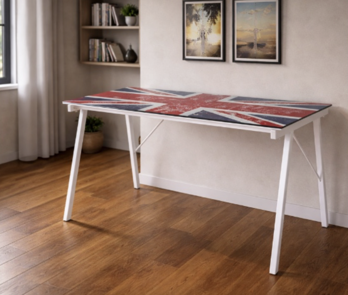 Struttura in acciaio verniciato a polvere opaca. piano in vetro temperato spessore 7mm con stampa. da assemblare.