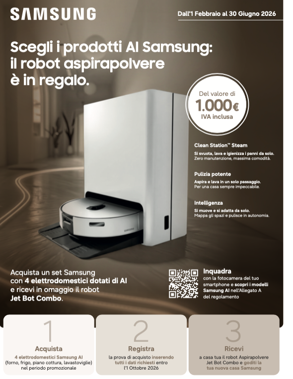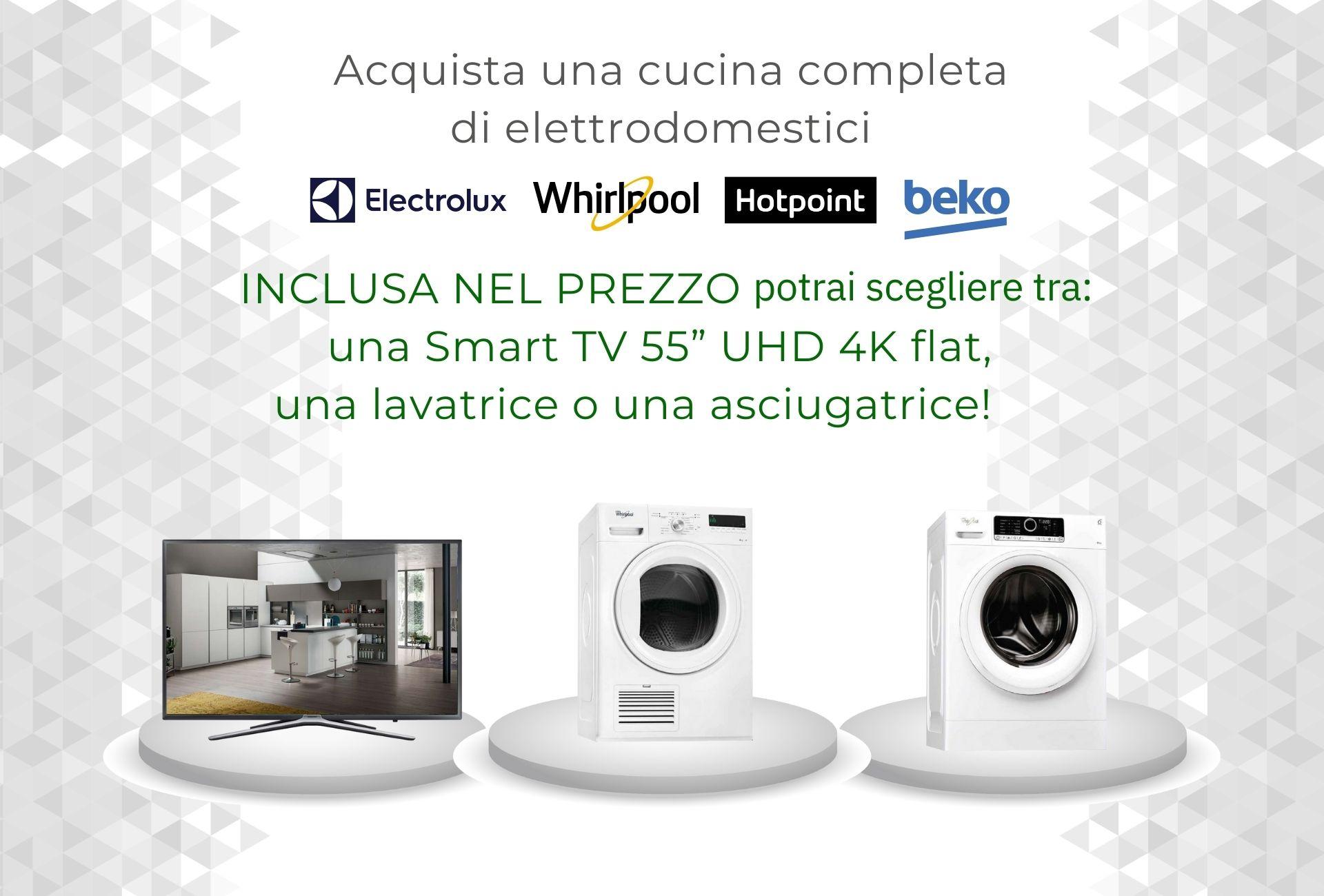 Acquistando una cucina completa di 4 elettrodomestici a marchio Whirlpool, Hotpoint – Electrolux – Beko, riceverai in Omaggio a solo 1€ a scelta tra: