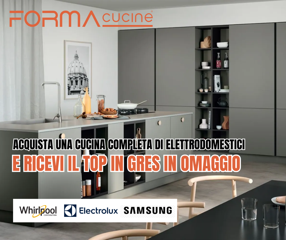 Nuova promozione Forma Cucine: acquistando una cucina completa di elettrodomestici, ricevi in omaggio il piano cottura!