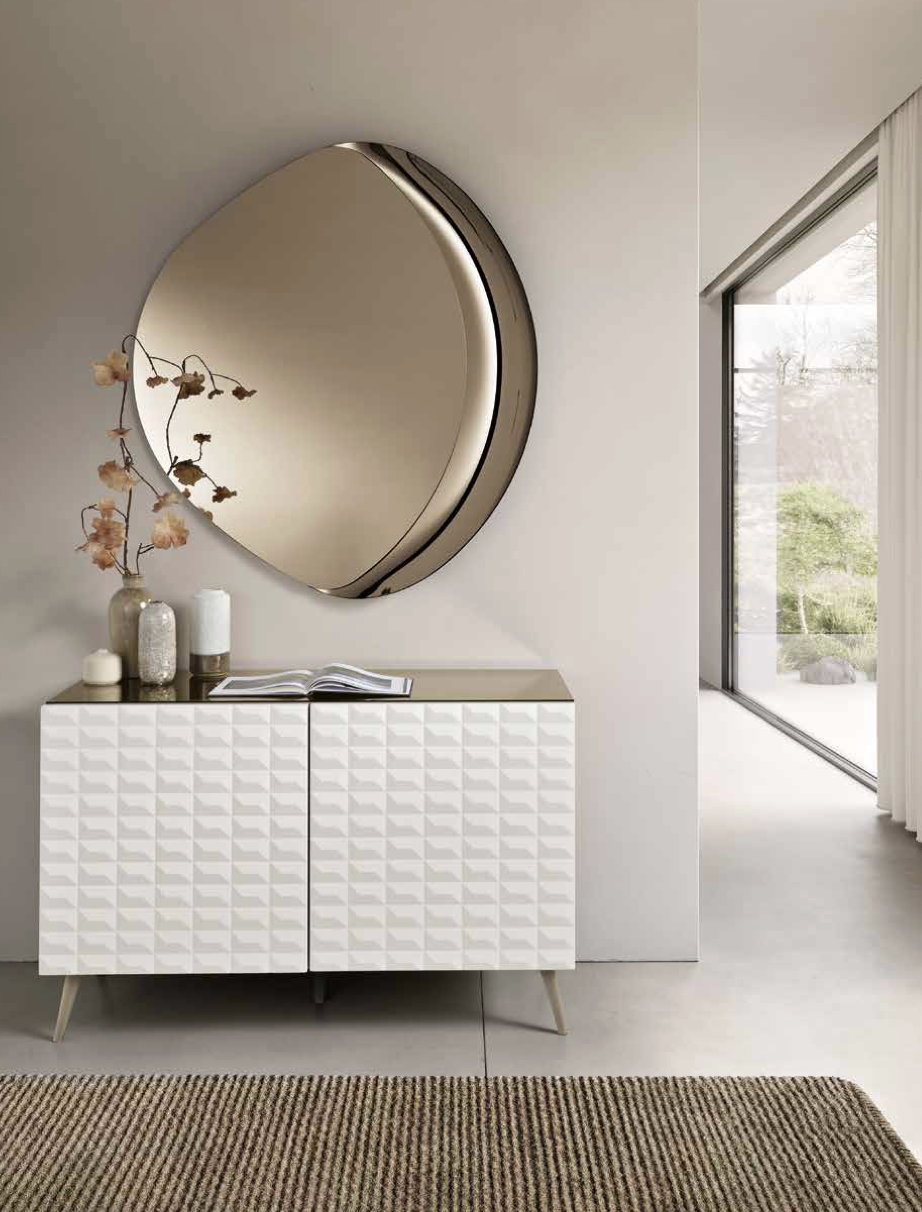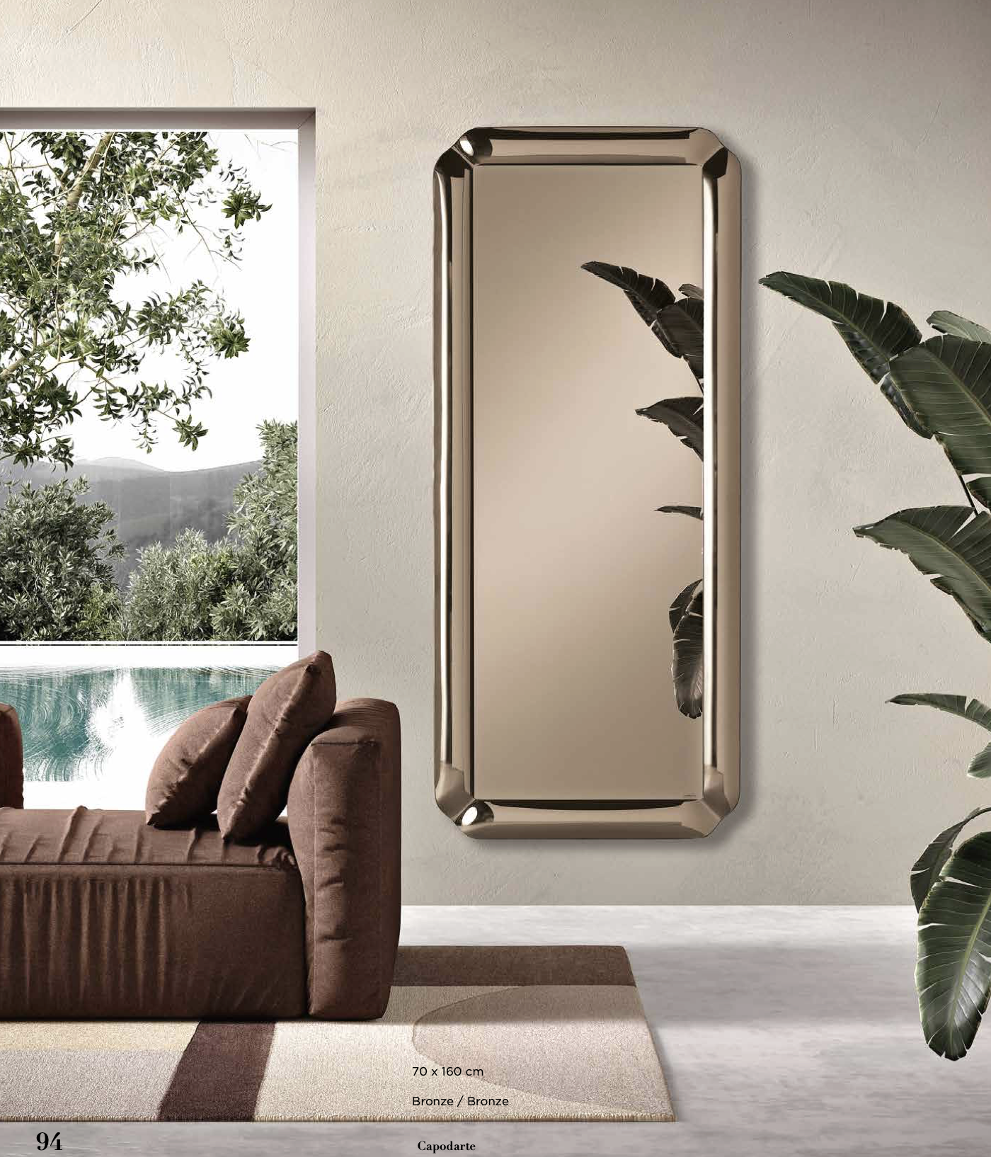 Le collezioni Capodarte si distinguono per linee raffinate e forme ricercate. Le cornici in legno lavorato o in metallo decorativo creano specchi capaci di diventare veri elementi d’arredo. Ideali per chi cerca un ambiente elegante, luminoso e dalla forte identità estetica, si integrano perfettamente in ingressi sofisticati, zone notte moderne o living dal gusto ricercato.